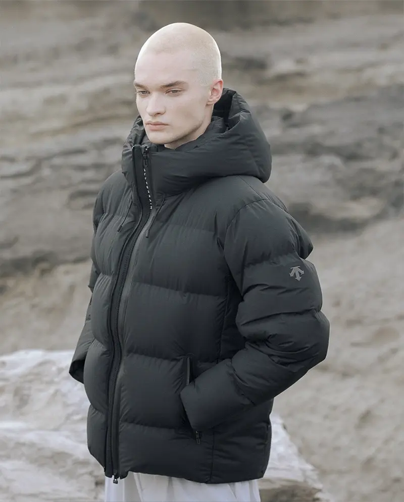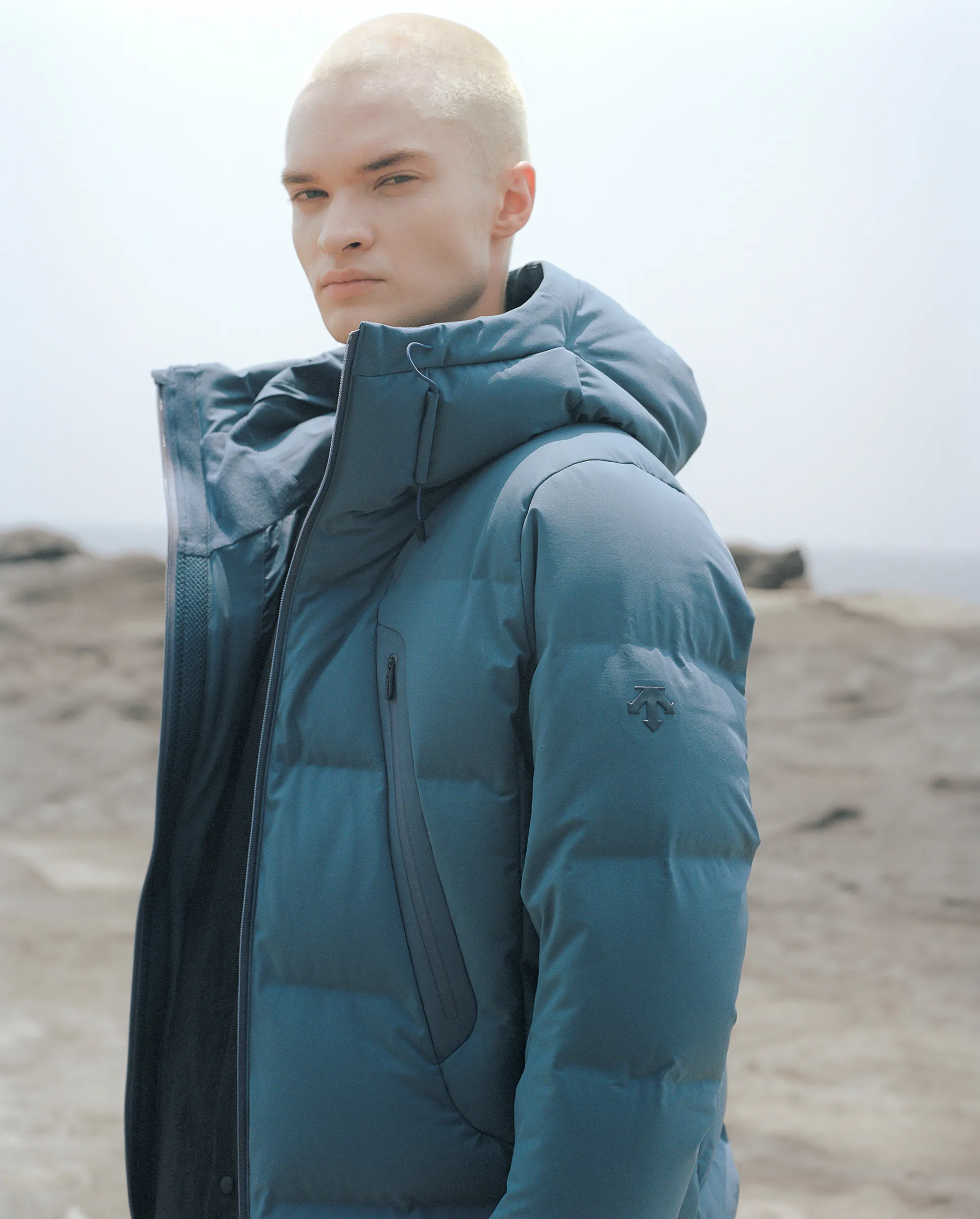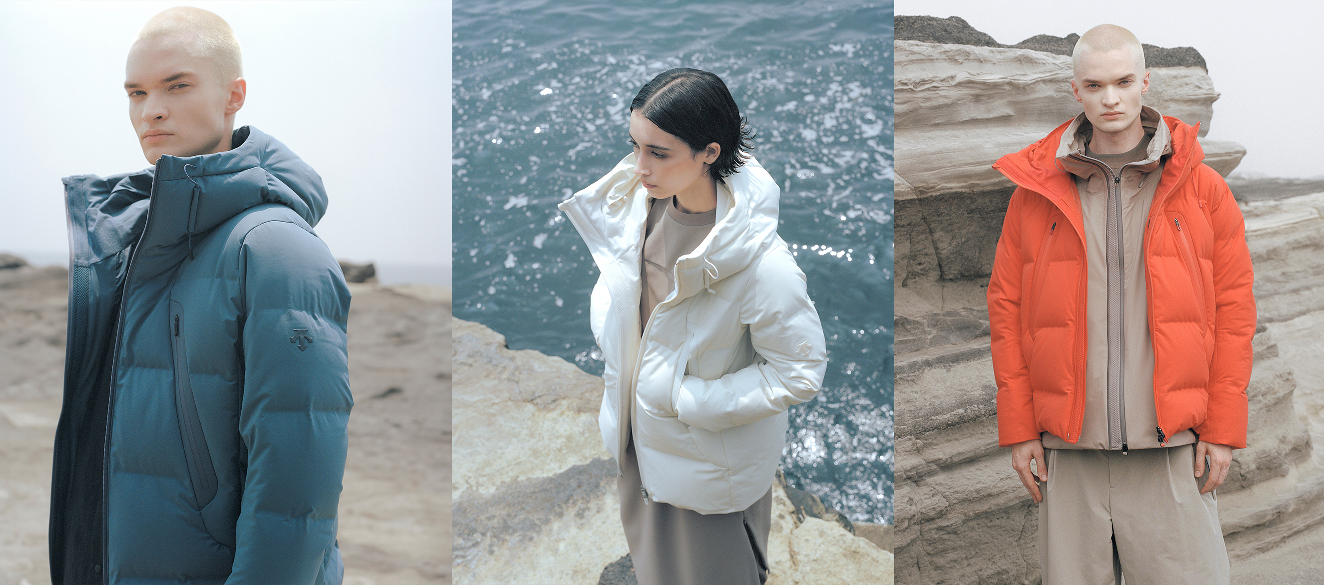 The starting point for it all was the overwhelming desire to create a unique, highly technical down jacket fundamentally different in concept from any that had ever existed before, utilising all the resources of Descente’s very capable designers and craftsmen. In all down jackets prior to this time, the technical focus had tended to narrow down to two main issues – lightness and the quality of the down itself (the so called “fill power”). Starting in 2007, however, Descente opted for a whole new approach, starting with a very hard look at what wearers thought were their weak, or problem points. And they were very soon obvious. Firstly, they performed poorly in rain or snowy conditions, with moisture easily penetrating through the holes made by machine stitched seams, and when the down became wet, it lost heat rather than retained it. Furthermore, feathers tended to work themselves out and protrude through holes in the stitching.