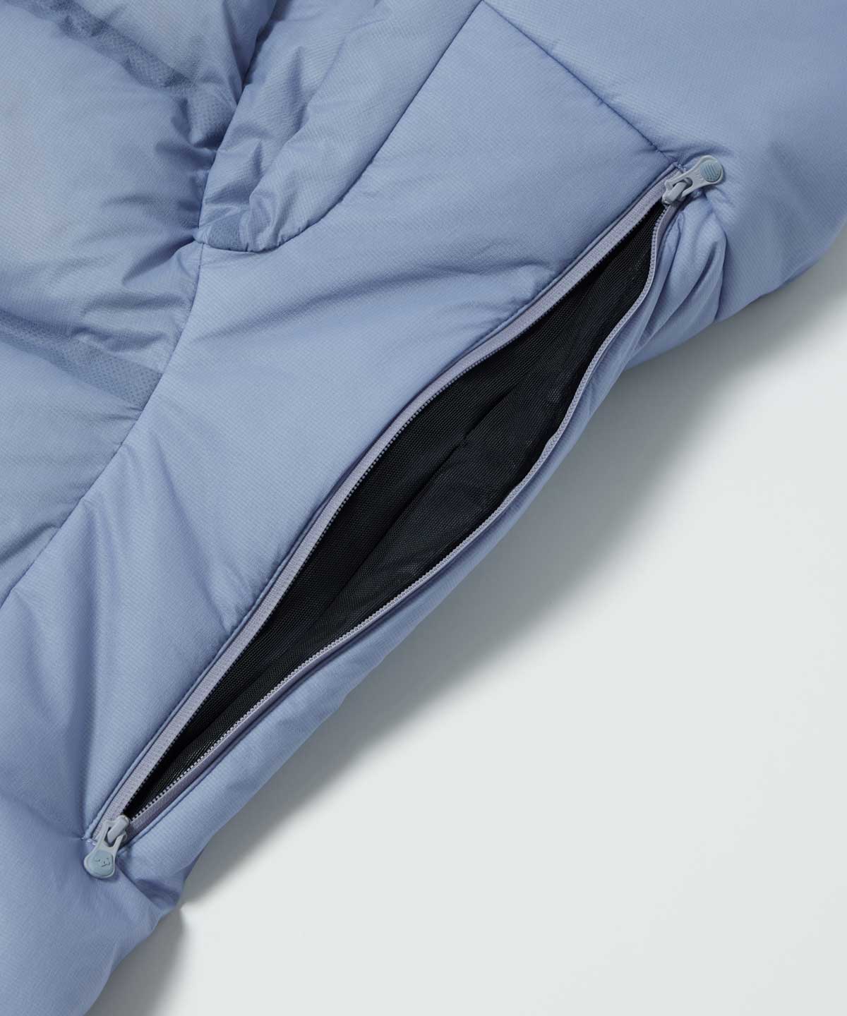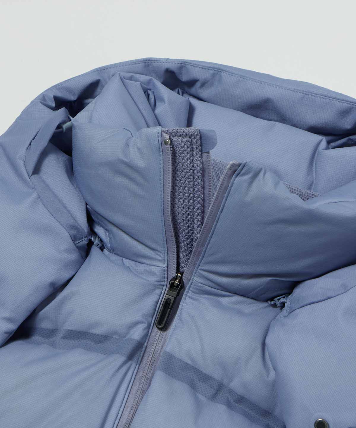 水沢ダウンの、内側の設計までこだわり抜いた美しさを表現するため、表地は12デニールの透け感のある軽い、はっ水性を備えた生地を選定/透けても黒点が比較的少なく、綺麗に見える羽毛を採用し、随一の軽量性と嵩高性を発揮する1000FPのダウンを充填/さらなる保温性向上を目的として、裏地に使用している保温素材HEAT NAVI/ヒートナビにプリーツ加工を追加することで、光を熱へと変換し保温性能を発揮する素材の使用面積を増やし、その効果を促進/2列のジッパーとその間に配置されたメッシュ生地により、外気を取り込み、衣服内にこもりやすい不快な熱や湿気を逃がすことが可能/脇にはピットジップベンチレーションを配置し、同様に快適な衣服内環境を提供/「DOWNPASS」認証を取得したトレーサブルダウンを使用しシリアルナンバーによる厳正な管理を行うことで全ての羽毛の調達過程を追跡することが可能