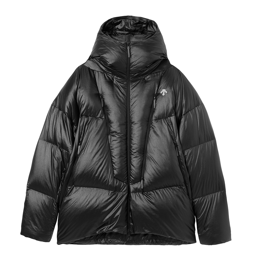 A down parka in a lightweight, supple, textured fabric insulated with water repellent 750 fill power down. The front closure has a full-length zipper, and there are four zippered pockets on the left and right front. Of these, the larger left chest pocket has additional compartments inside. Inner cuffs on the sleeves reduce wind entry, and rubber spindles and stoppers at the hem make adjustment easy. It comes with a stuff sack for portability. Suitable for extreme cold-weather conditions and a wide range of outdoor activities.