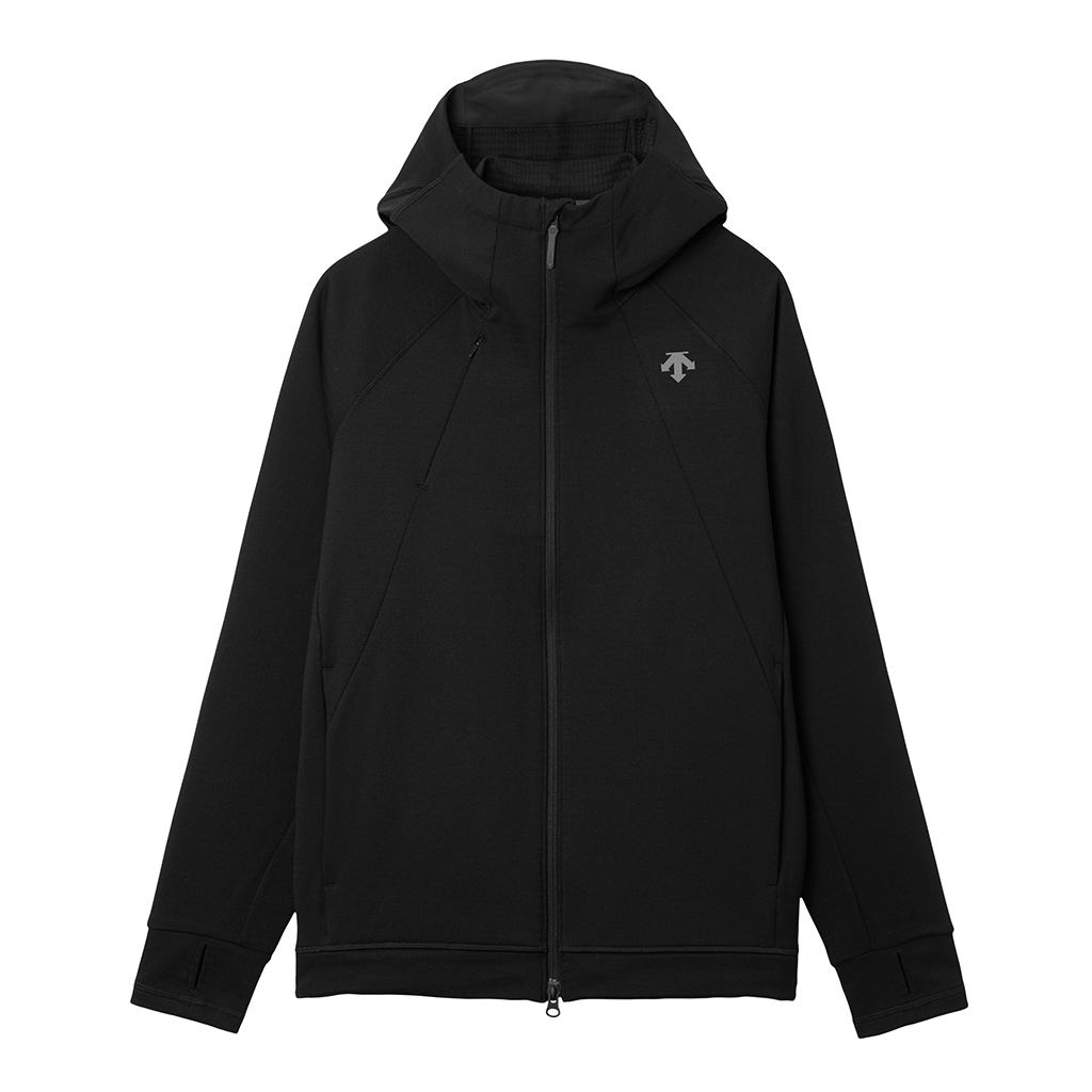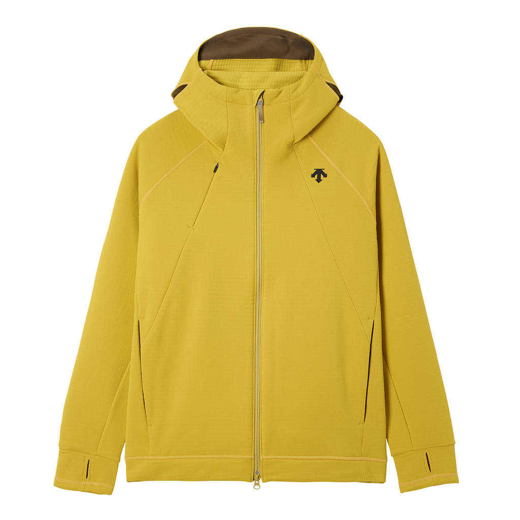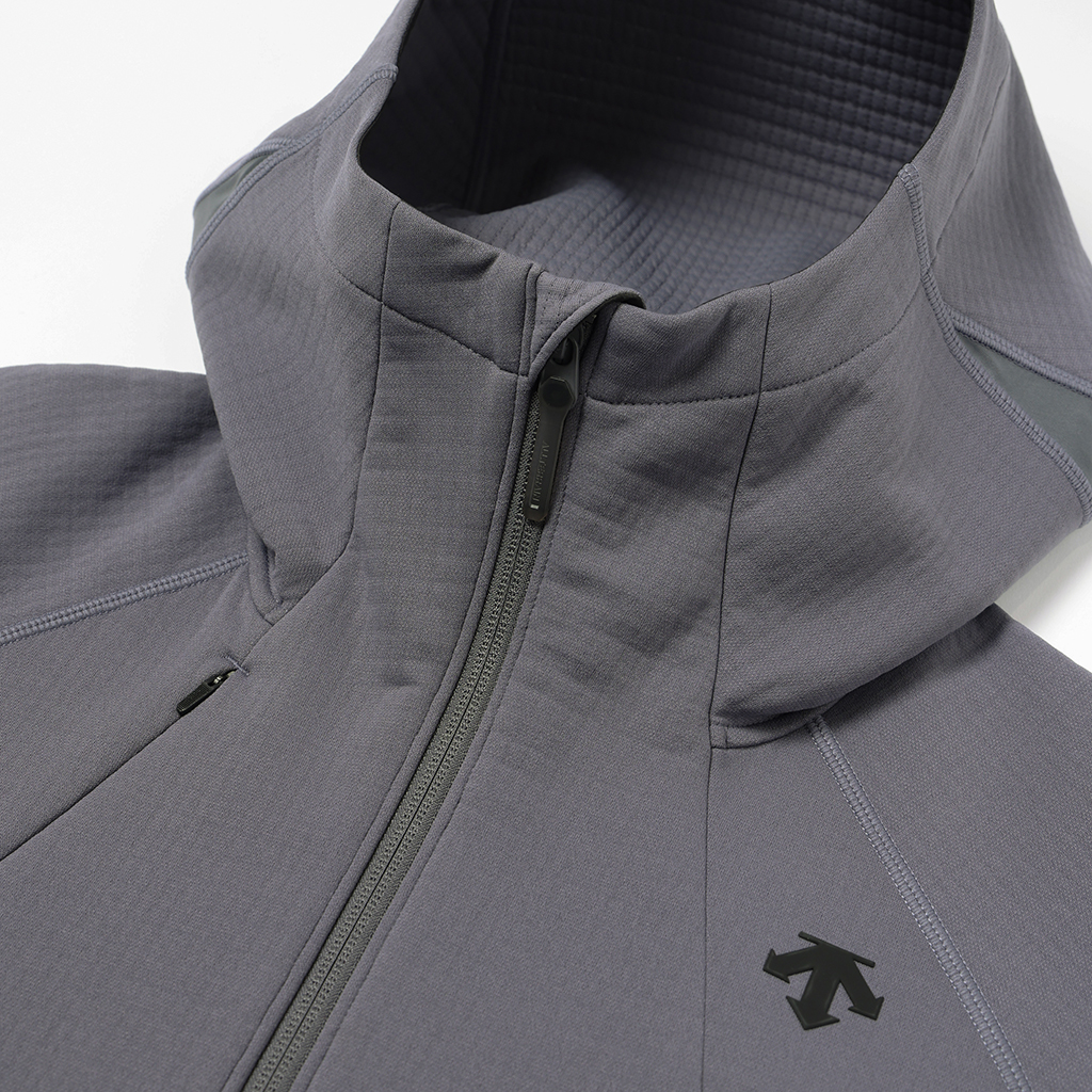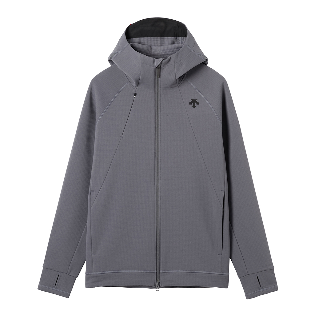 A full-zip parka in a special fabric with a lattice-like construction on the inner surface and microfiber encapsulation for a soft skin touch and improved warmth retention. It has zippered side pockets and a zippered right chest pocket.with a mesh pouch for ventilation and added storage. Thumbholes in the cuffs and rubber spindles and stoppers on the hem make for easy adjustment. Suitable for both outdoor activities and casual wear.