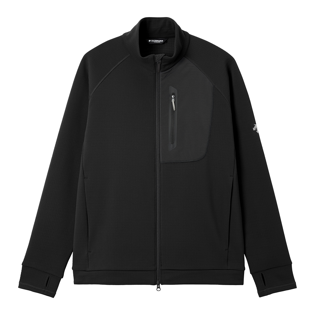 A full-zip jacket in a special fabric with a lattice-like construction on the inner surface and microfiber encapsulation for a soft skin touch and improved warmth retention. It has zippered side pockets and an additional bonded left chest pocket with a zipper. Thumbholes in the cuffs and rubber spindles and stoppers on the hem make for easy adjustment. Suitable for both outdoor activities and casual wear.