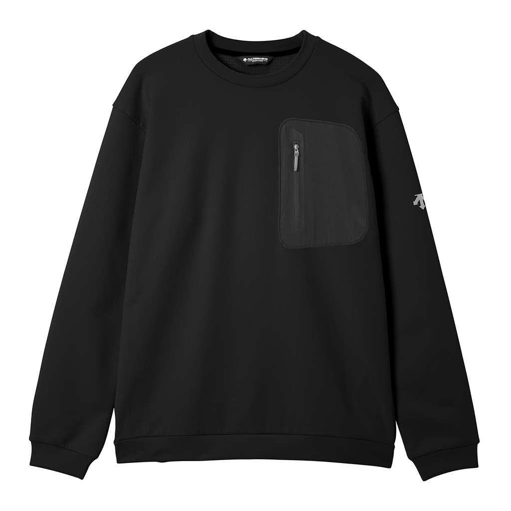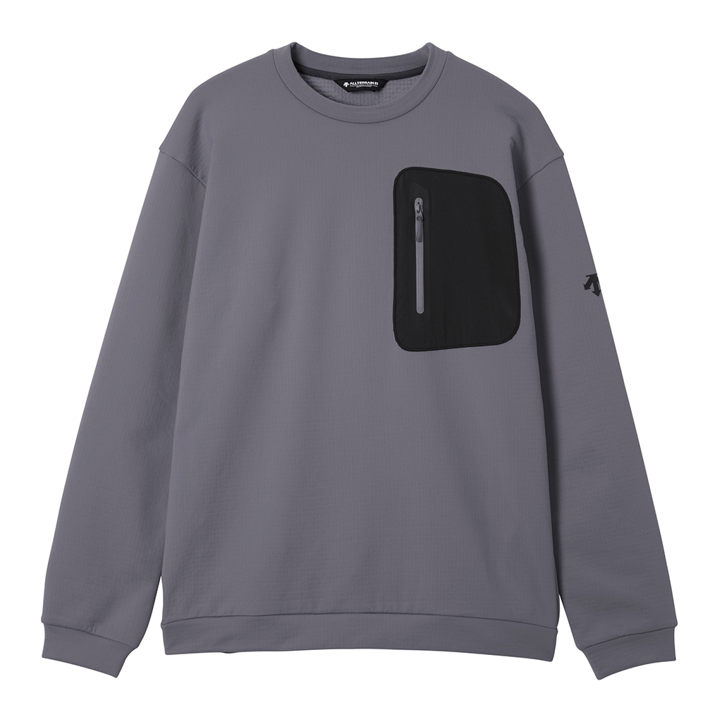 A crew neck pullover in a special fabric with a lattice-like construction on the inner surface and microfiber encapsulation for a soft skin touch and improved warmth retention. It has a bonded left chest pocket with a zipper. Suitable for both outdoor activities and casual wear.