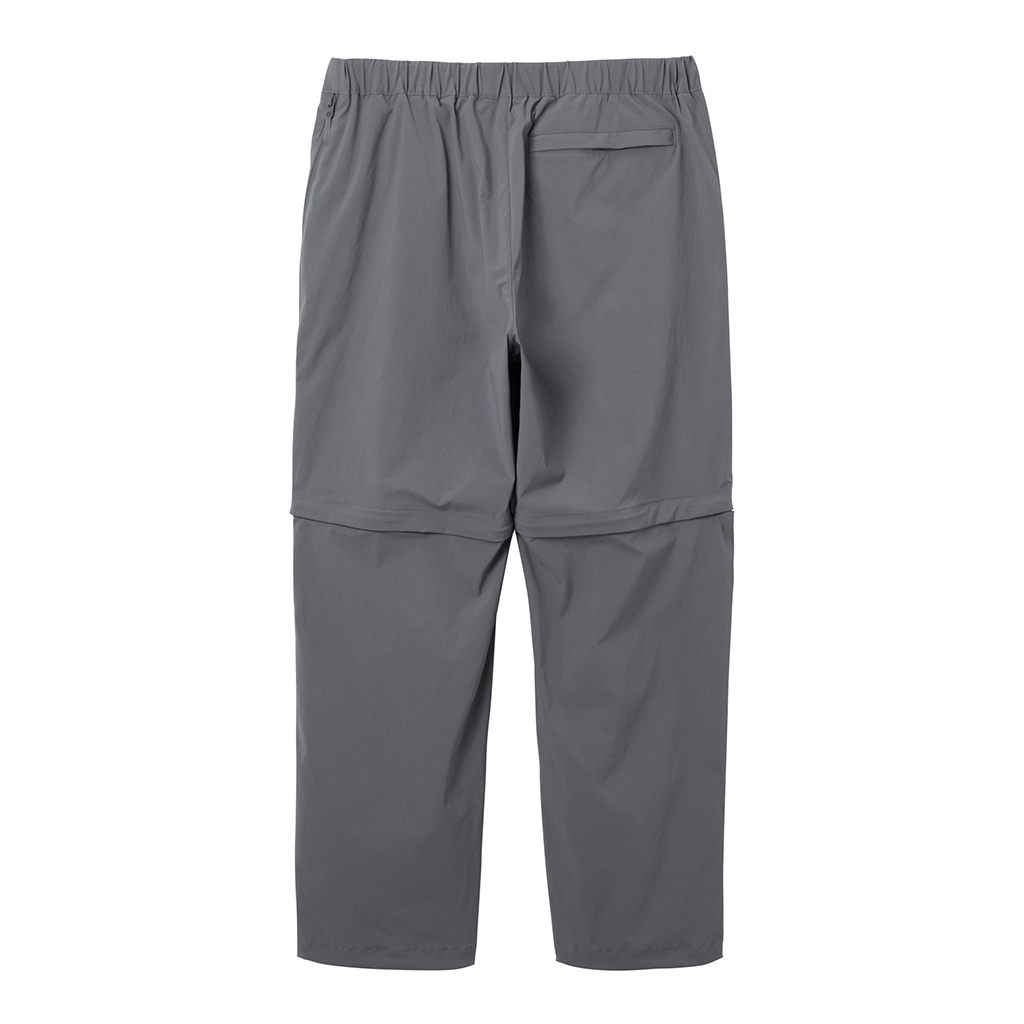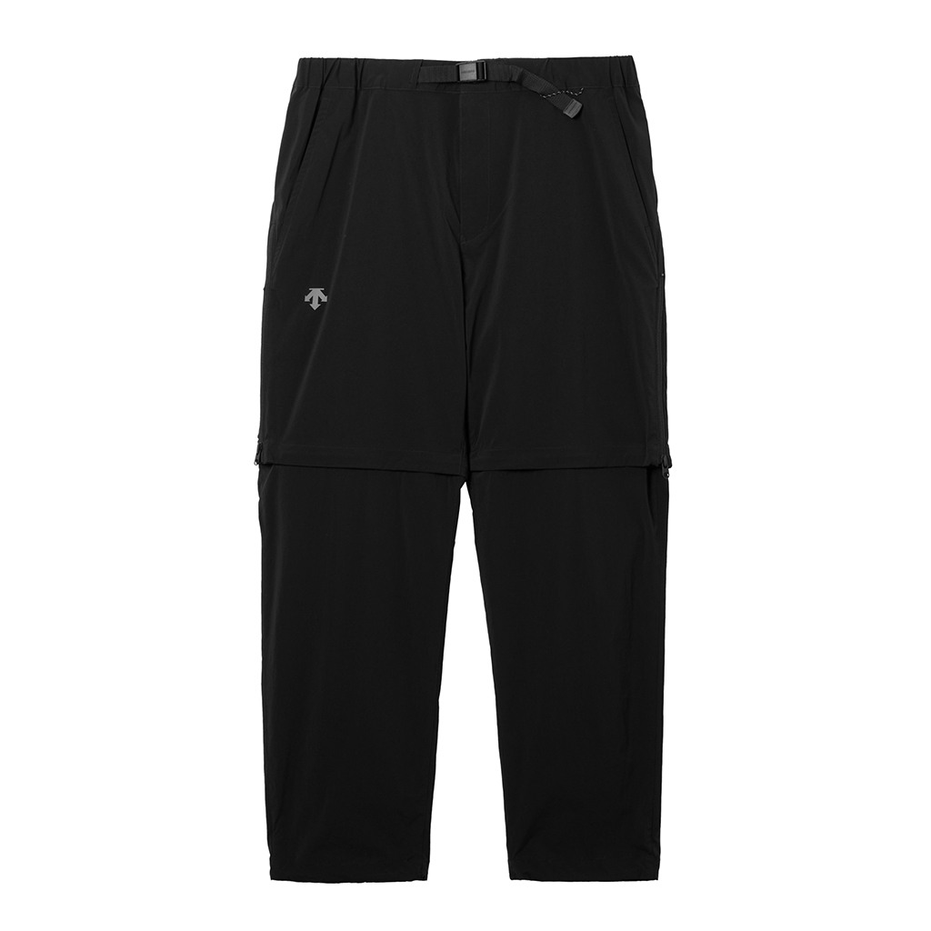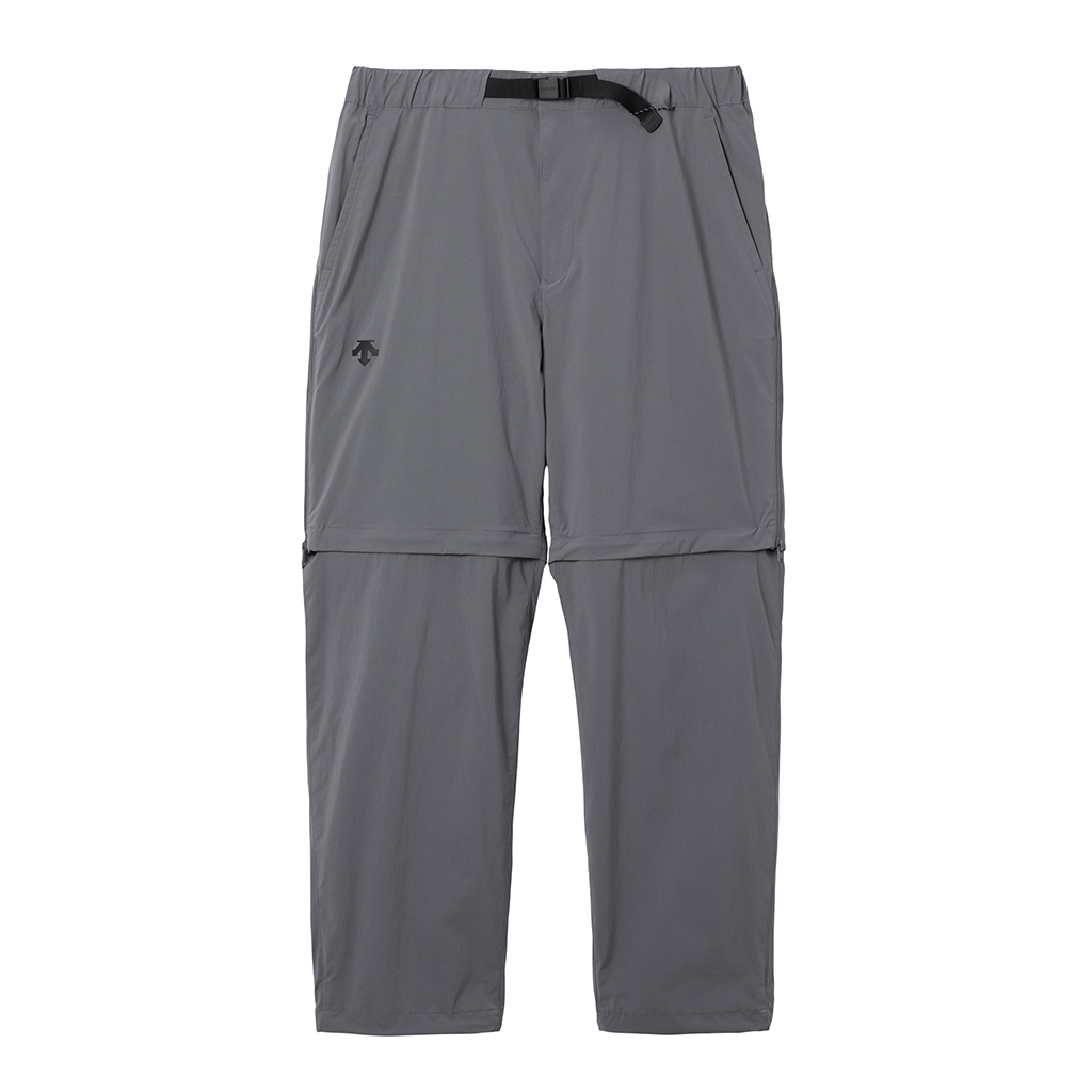 2-way pants in CORDURA? fabric developed by DuPont of the USA, featuring stretch for freedom of movement and some water repellency achieved with a CO treatment, free from decomposition-resistant fluorine compounds.The front closes with a button-and-zipper and a waist belt allows easy adjustment. Lower legs can be detached with zippers for conversion to shorts. Rubber spindles and stoppers at the lower hems allow easy pant width adjustment. Suitable for both outdoor activities and everyday wear.