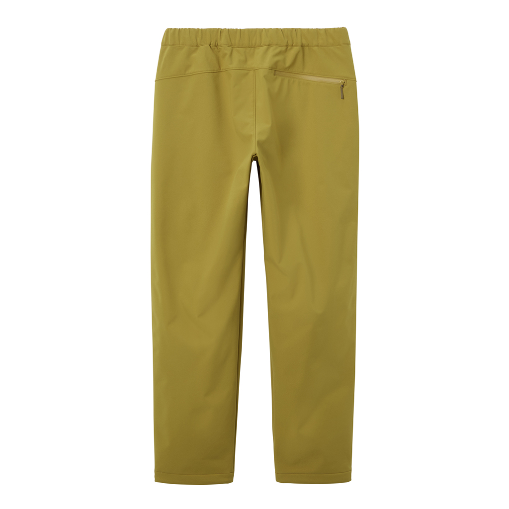 Stretchy soft shell pants in a water repellent, water resistant, windproof 3L fabric. The C0 water-repellent coating does not use any environmentally damaging fluorine compounds. A grid structure on the inside improves comfort and adds stretch for freedom of movement. A waist belt allows easy adjustment and the legs can be narrowed with rubber spindles and stoppers at the bottom hems. To complement the water resistant fabric, the three pockets in the front and rear have waterproof zippers. Their functionality makes them ideal for outdoor activities as well as everyday wear.