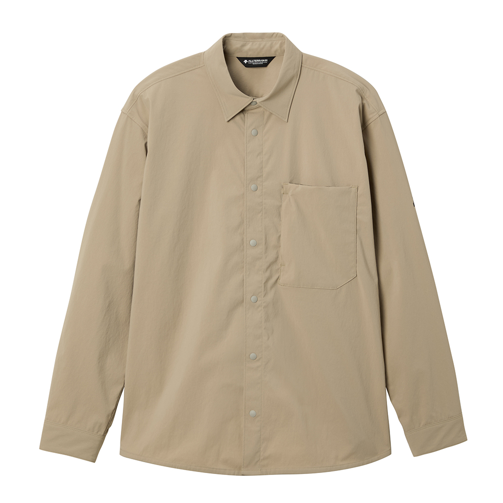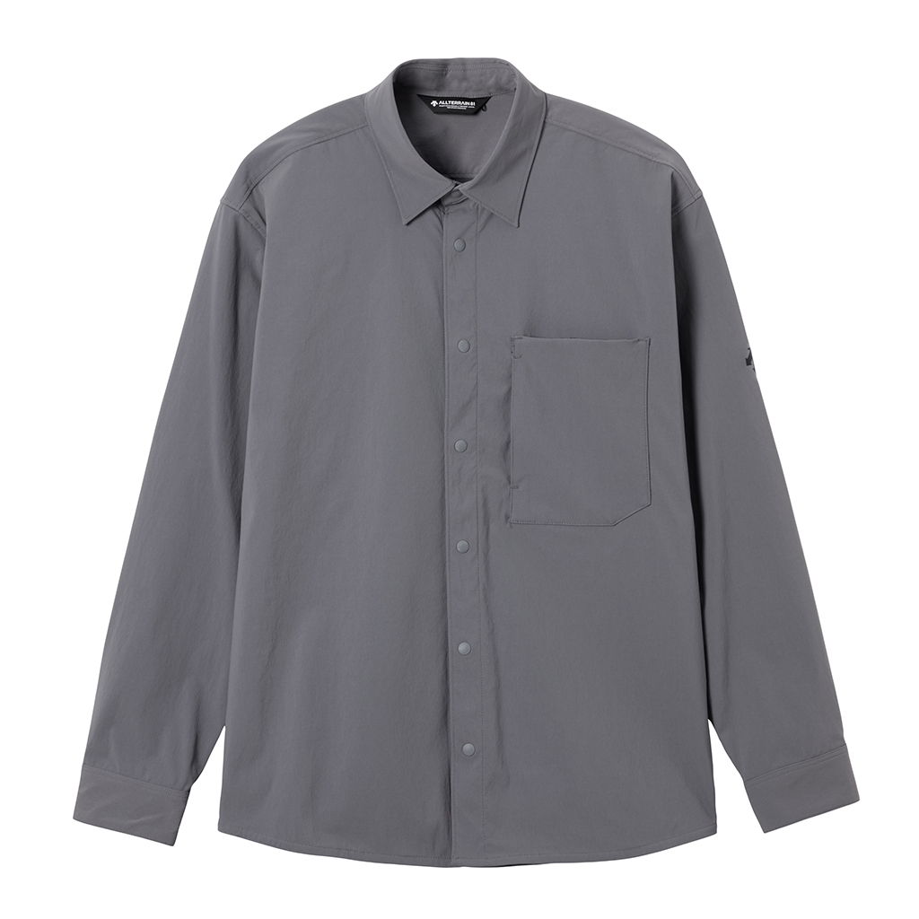 A long-sleeve shirt in CORDURA? developed by Dupont in the USA . It offers stretch for freedom of movement and moderate water repellency, which is achieved with a CO treatment, free from decomposition-resistant fluorine compounds. The front features a snap button closure. A patch pocket on the left chest has dual openings, on the top and inner vertical side, for convenient storage of small items. Suitable for a wide range of outdoor activities and everyday wear.