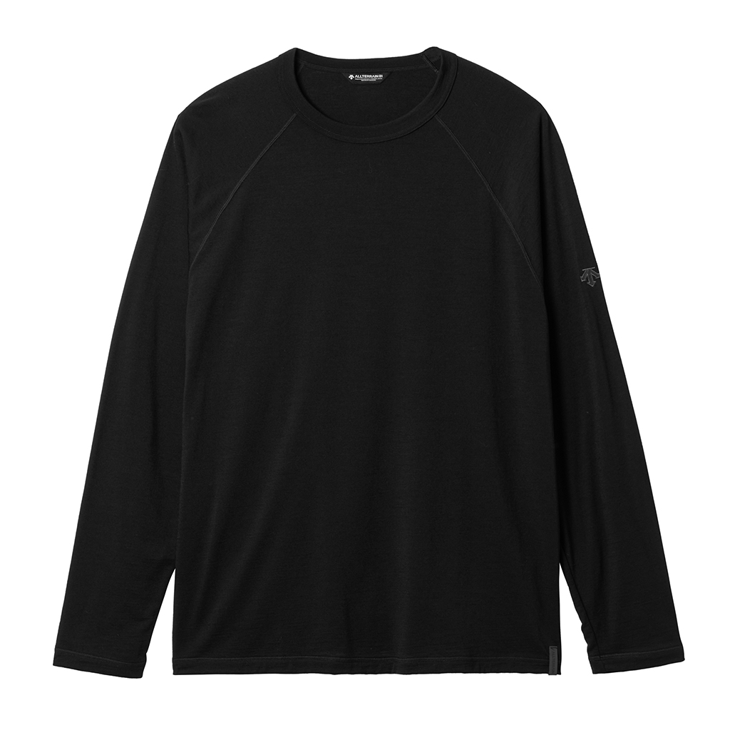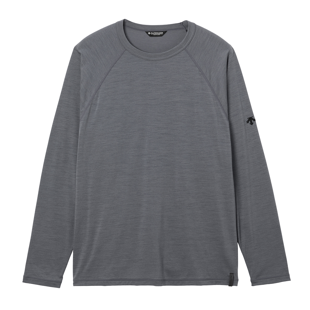 A long sleeve crew neck T-shirt in NIKKE AXIO? wool with a soft, smooth touch. The unique wool yarn is made using the IN-SPIRAL SPIN manufacturing process which wraps filaments inside the wool fiber bundle and intertwists them, maintaining the texture and deodorizing properties of wool while being resistant to sagging, even after washing. With a relaxed fit, it works well as an inner layer or standalone piece for outdoor and daily use.