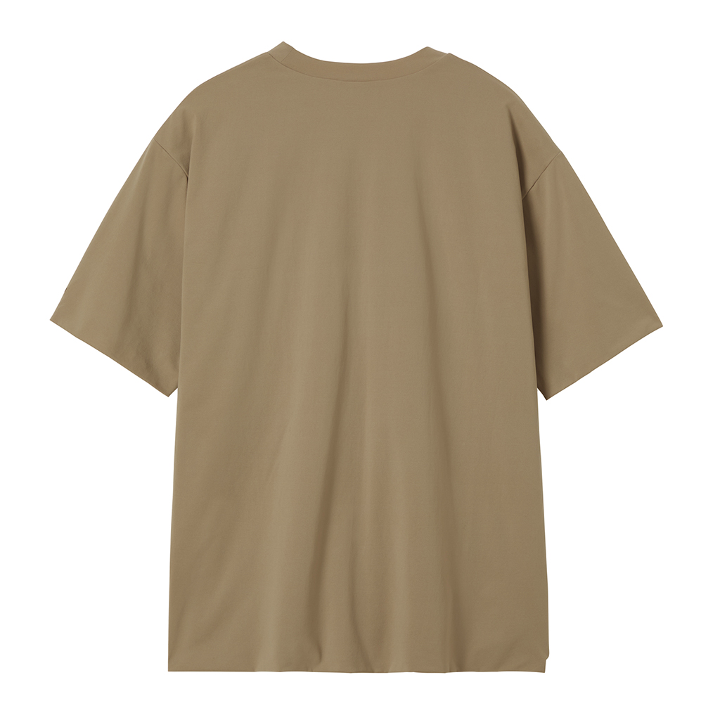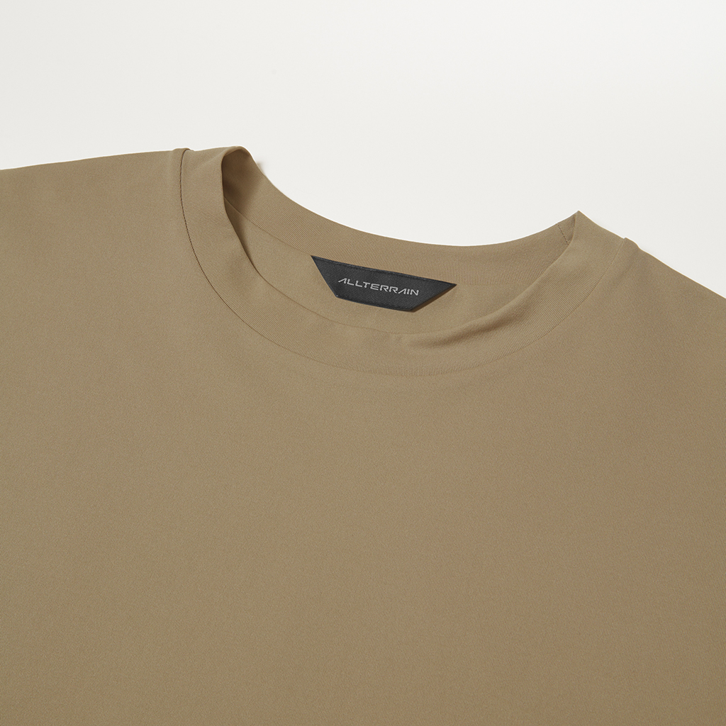 A T-shirt in PRIMEFLEX AERIAL KNIT, renowned for its quick-drying, antibacterial, deodorizing, and UV-blocking properties. The double-layered construction reduces skin contact with seams, ensuring a stress-free fit. The minimalist design offers a clean aesthetic and a comfortable fit.