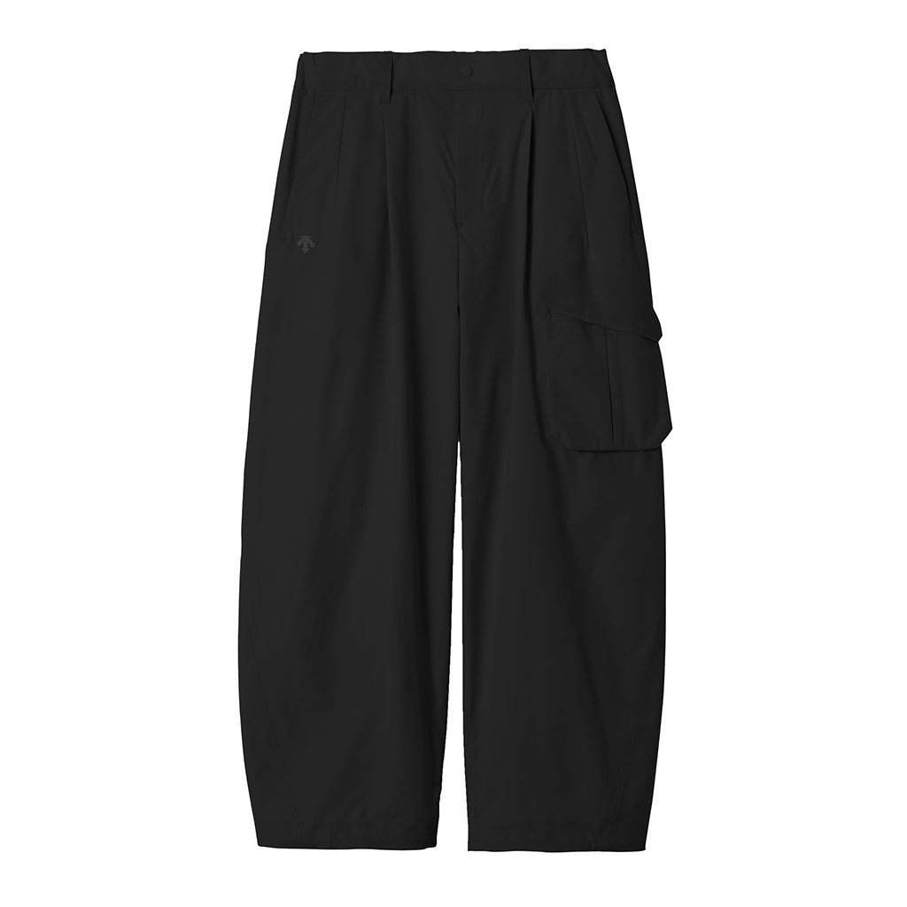 Soft, cargo pants with excellent stretch and water repellency. The relaxed silhouette creates an airy, comfortable fit. Ultrasonic welding and heat bonding create a seamless interior and ensure the stretch is unimpeded. The minimalist aesthetic offers styling options for both business and casual settings.