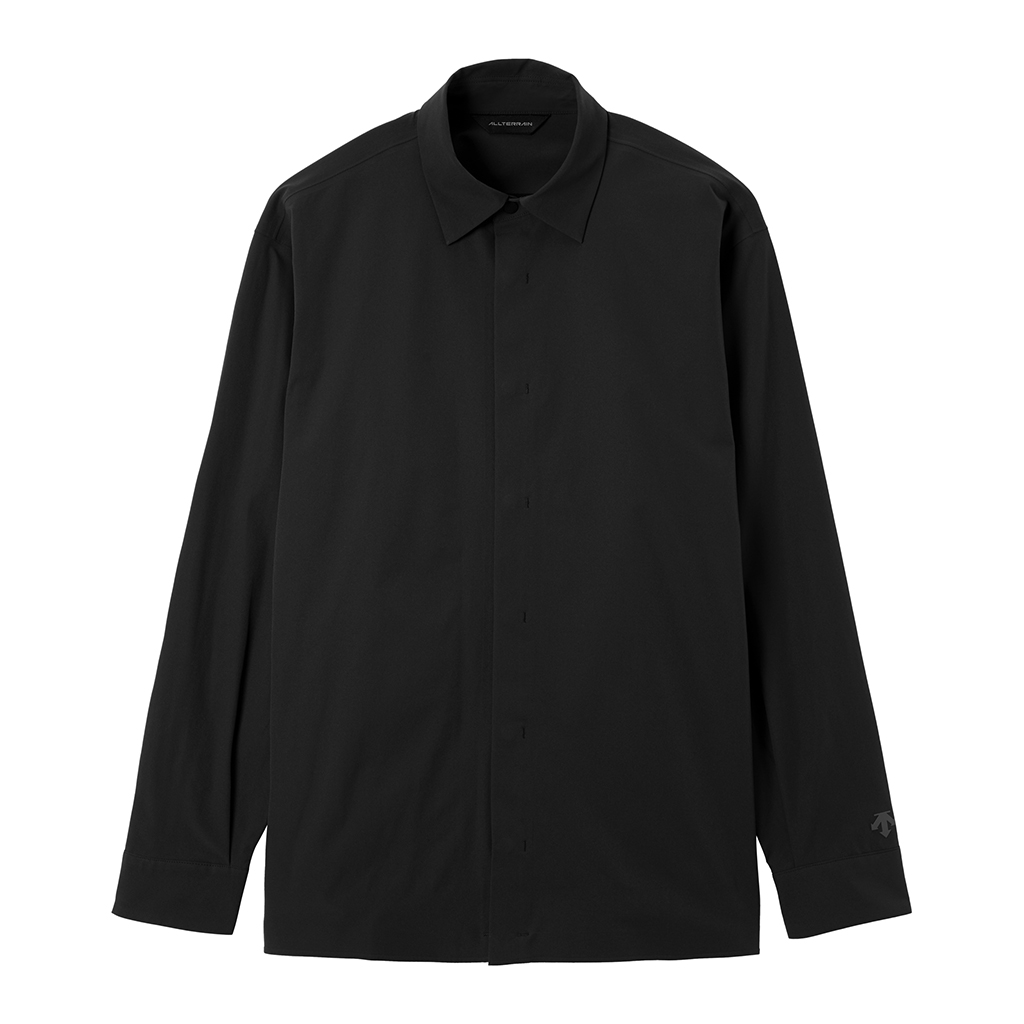 A soft long sleeve T-shirt with excellent stretch and water repellency. The relaxed silhouette creates an airy, comfortable fit. Ultrasonic welding and heat bonding create a seamless interior and ensure the stretch is unimpeded. Its minimalist aesthetic offers styling options for both business and casual settings.