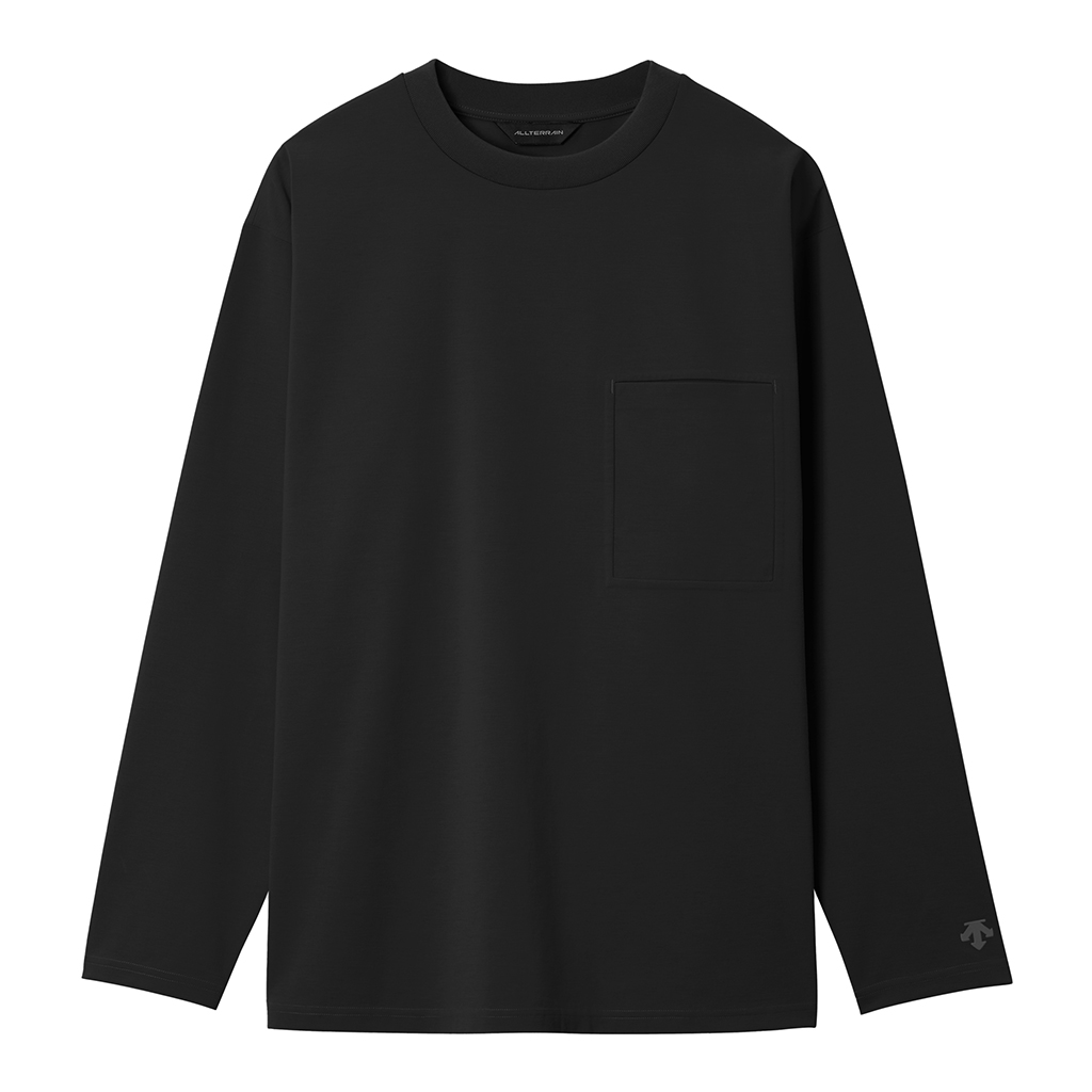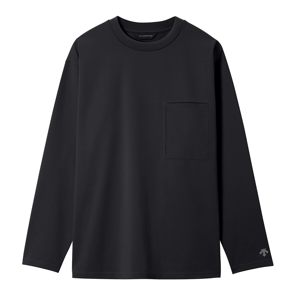 A long sleeve T-shirt with a cotton-like texture, in full-dull micro-spun stretch, quick wicking, quick drying yarn. Ultrasonic welding and heat bonding create a seamless interior and protect the fabric’s natural stretch.The minimalist, streamlined design maximizes comfort.