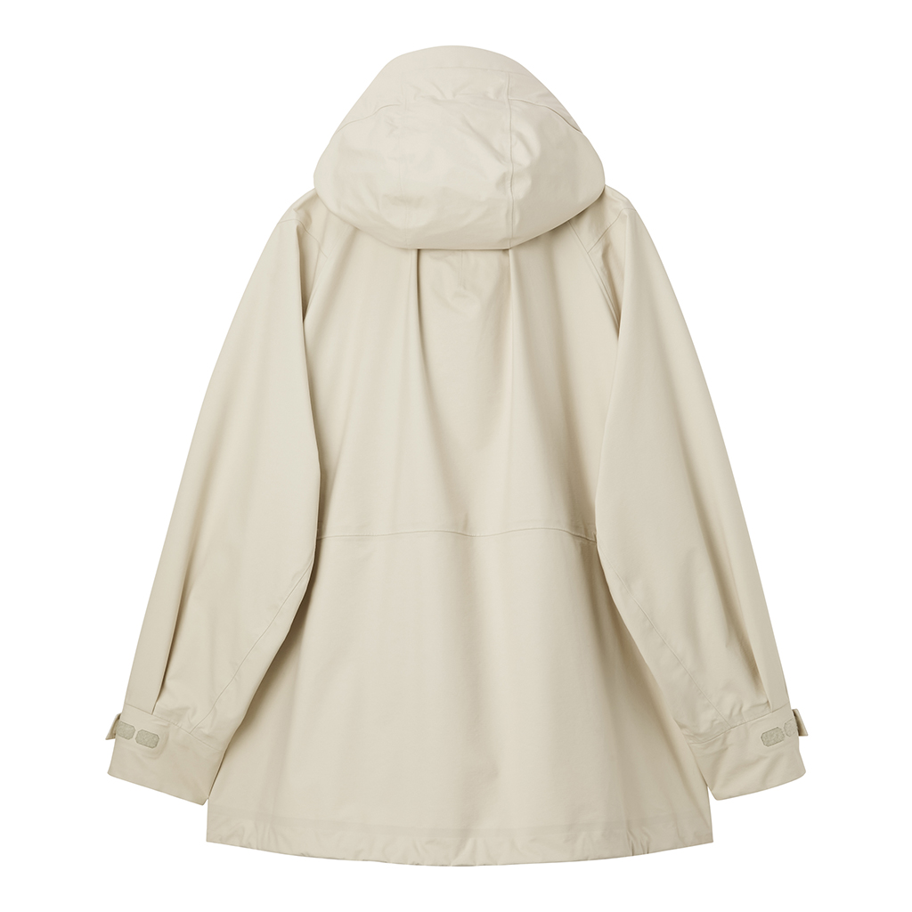 A hard-shell jacket in Dermizax for optimal waterproofing and breathability. The design of the body and sleeves emphasizes a relaxed fit, best for pairing with skirts and other feminine items. The hood has a Cohaesive? cord lock system for quick and easy fit adjustment. Opening the zippers on the chest allows air to enter and flow through to the back for release.